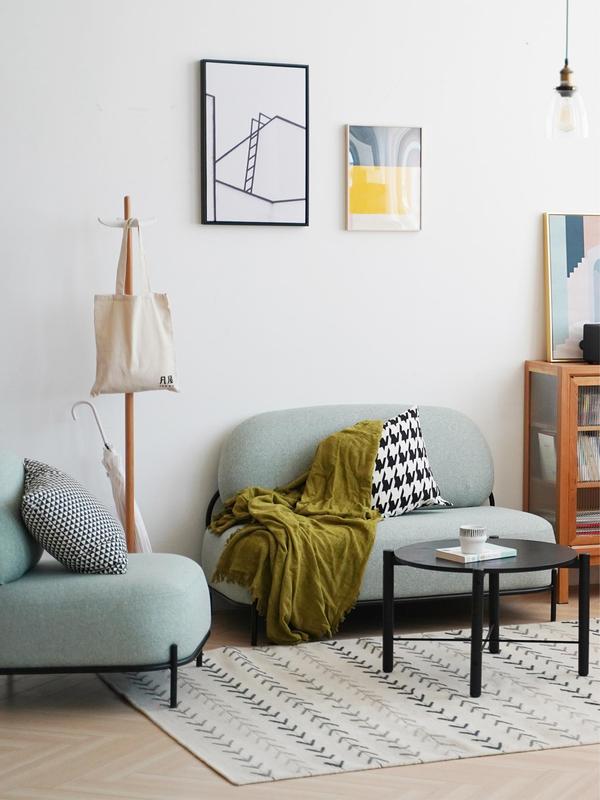 打造舒适的客厅,一定要选用轻色调的家具。薄荷绿的马卡龙色沙发增加了空间的清新度,搭配樱桃木四叶草状的挂衣架,使感光度变得柔和。再搭配上黑色质感的小圆几,不仅不跳脱,还能hold住整个搭配。打造舒适度极...展开