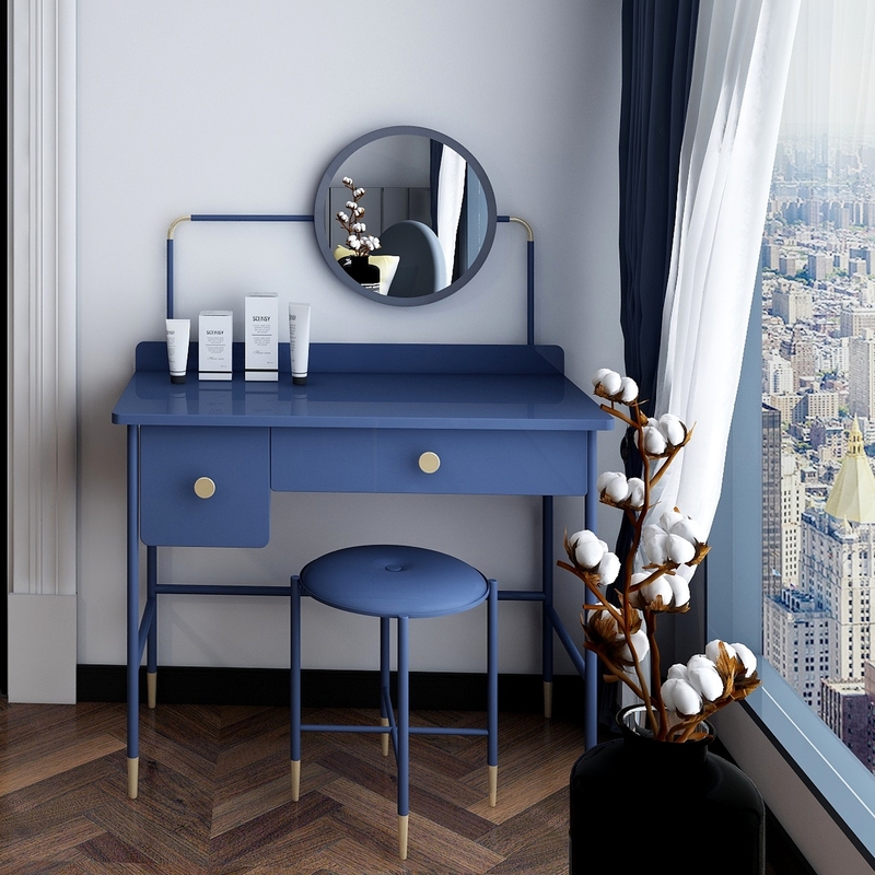 漂亮的大面积落地窗旁边是放置梳妆台的最佳之地,只需要在卧室的窗边挪出一小个地方即可,窗边每天会投射一部分自然的采光,对化妆一角来说是非常友好的,既可以节省其他空间又可以打造专属于自己的一角化妆世界。