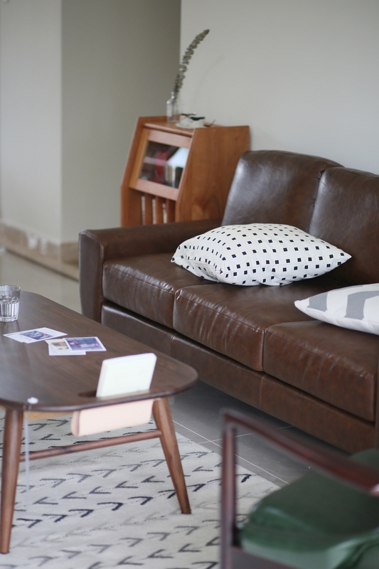 处于客厅C位的日式风茶几,选用黑胡桃最合适不过,口袋式的设计,便于收纳日常用品。搭配上带有美式复古风的皮革制沙发,不仅现代感十足还很舒适,又带一丝北欧风的味道。