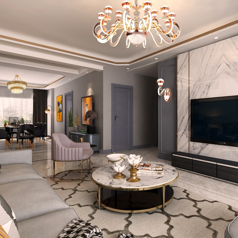 后现代灯臂发光吊灯,是今年流行的趋势。它简约不简单,连灯臂都可以发光,发光面积更大,光线更加柔和。它整体高度低,更适合普通商品房。它还可以链接天猫精灵,通过语音来控制开关灯,瞬间提高客厅科技感。