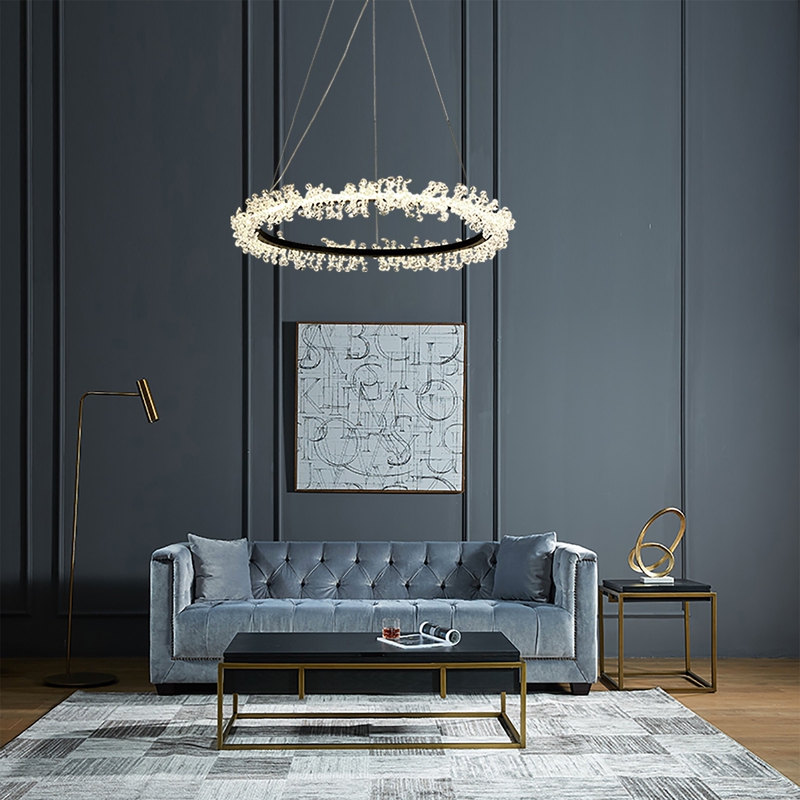 整体以灰蓝色为主色调,搭配丝绒的沙发和金属质感的茶几以及水晶吊灯,原本有点偏冷的灰蓝色增加一些金属色顿时让整个空间多了一丝温暖,灰蓝色系现在非常流行,而且很好搭配,整体给人一种深邃、宁静、高雅、神秘感...展开