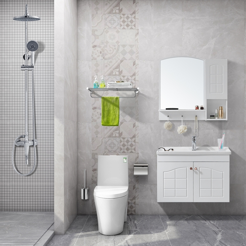 不同的复古情调,总是有不一样的味道。浴室整体以复古图案墙砖与中式元素的浴室柜为主调呈现出自然但雅的空间氛围。