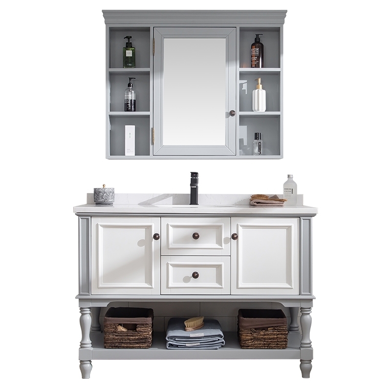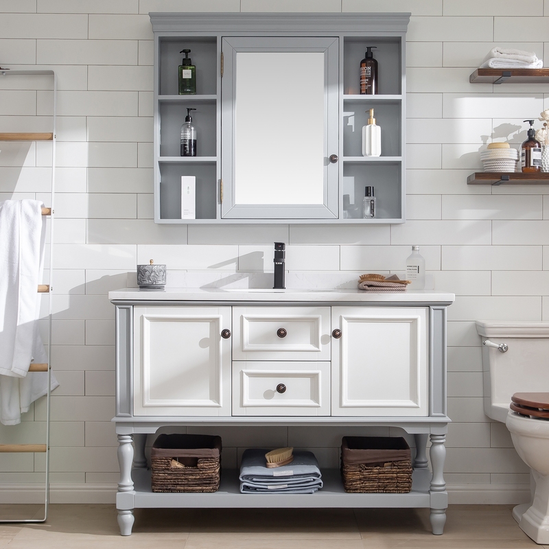 法国的优雅不只是他们的人民,更在于生活的方方面面,这款卫浴柜的设计灵感来源于法式的优雅。灰蓝色和白色的混搭, 透露出淡淡的古典感。自带4个独立的收纳空间,特别适合瓶瓶罐罐特别多的精致girl~