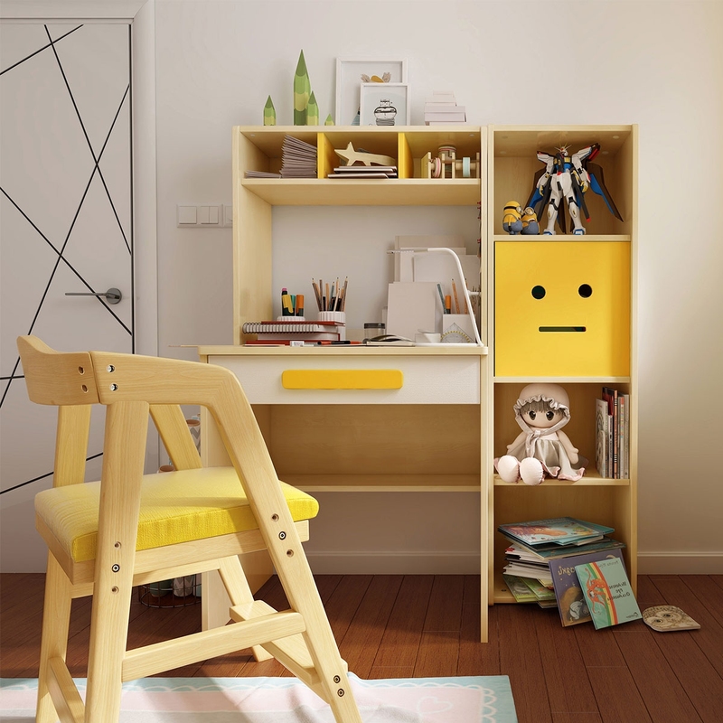 用实木打造的儿童书房家具,既健康又环保,通过黄色元素的点缀调节,让孩子感受到一股活力清爽,形成轻松舒适的学习氛围。加上有多格储物的收纳柜,更能培养孩子自主有序分类储物的好习惯。