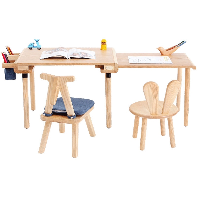 儿童家具由天然木材制成,是环保,舒适,耐用的儿童房设计的绝佳选择,实木书桌,配有实木的椅子和台灯,再配上一些植物,这样一个舒适的学习区域就完成了。