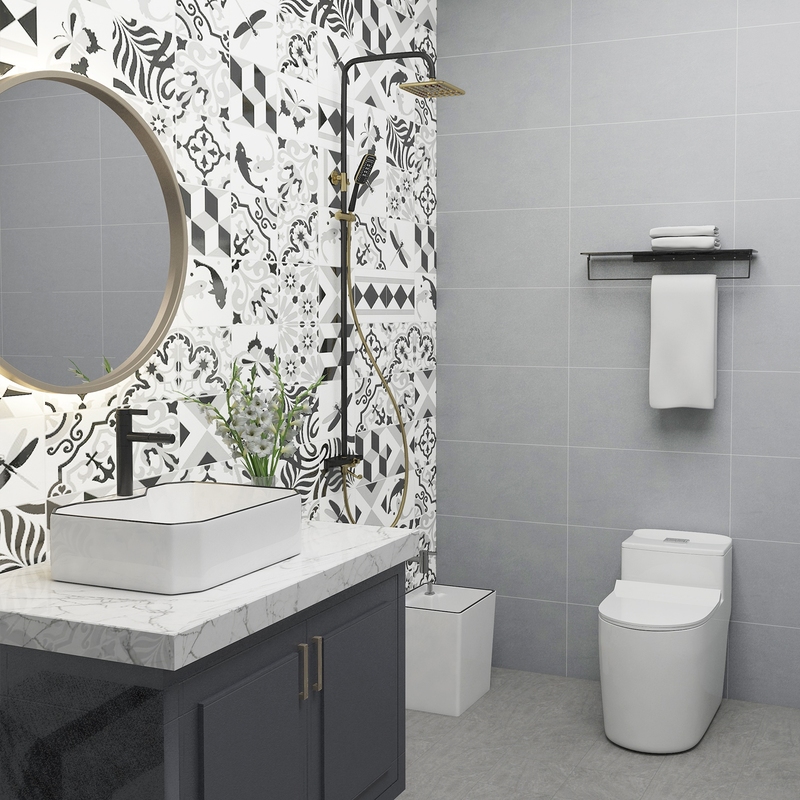 地中海风格现在也是很多人所喜欢的,一面墙以灰色为背景,一面是比较混搭的风格,搭配起来自然轻松,让人感觉到舒服舒适,毫无违和感。