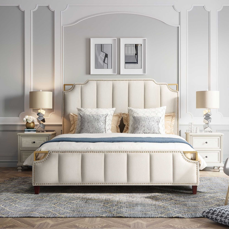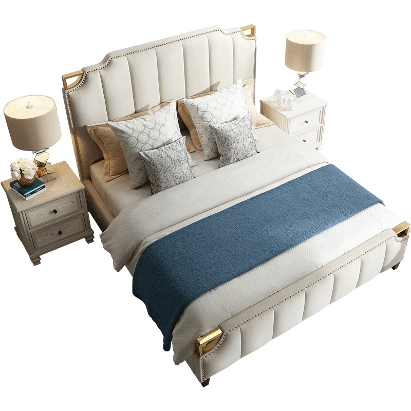 卧室设计,以淡雅的灰白色系,打造出一个纯美浪漫的空间。 一张米白色的美式轻奢床,不由得让人心动:低调的白加上高调的金,惊艳而不失优雅气质,于质朴中显芳华,于典雅中显奢华。