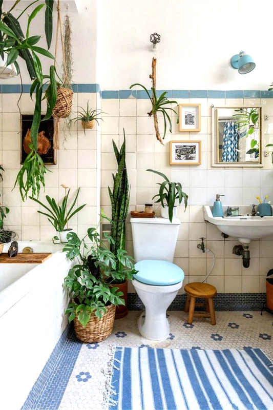 除了浴室必备的洗漱台、浴缸等物件外,绿植是一个可用来装饰的元素。蕨类、虎尾兰、龟背竹等喜欢潮湿环境的绿植,浴室反倒是一个适合它们的生长空间。