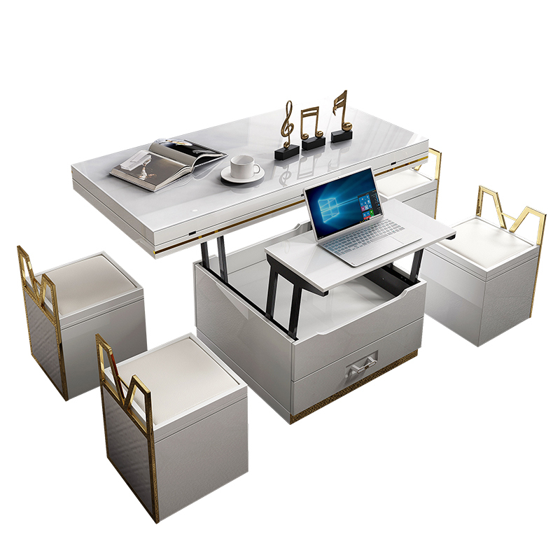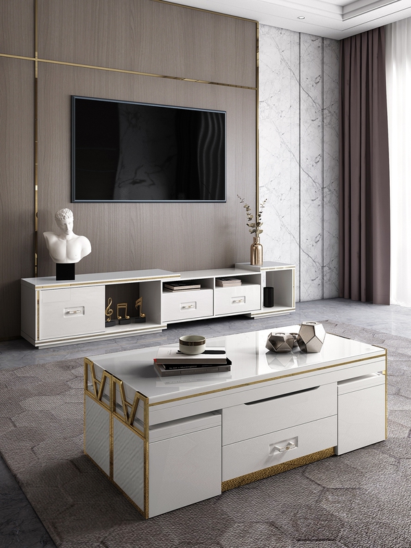 轻奢简约风格,茶几餐桌电脑桌一几三用,手动升降合金支架,可办公娱乐,餐桌展开可满足6-8人同时就餐;同系列电视柜边柜,自由伸缩设计,储物空间容量大;紫灰色绒布窗帘,让客厅空间的光线布局更加均匀,还你一...展开