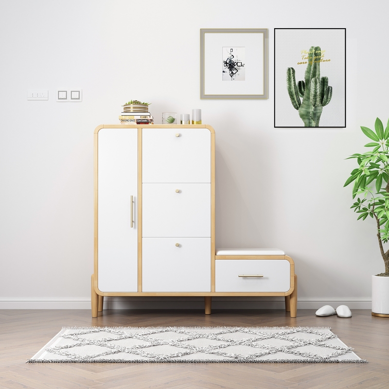 挑选明亮富有情调的桌布是餐厅点睛之笔,旁边的餐边柜则和玄关柜保持同种风格。 厨房地砖和入户玄关处保持一致