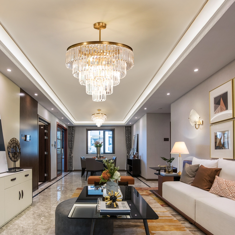 现代住宅想要换种家装风格,比如换一盏不规则的水晶柱吊灯,线条流畅,不事雕琢,玻璃片的点缀,立马高级感显现,搭配一组当下流行的组合沙发,抱枕与沙发颜色的混搭,让用户享受惬意舒适的自在空间,给整个家焕然一...展开