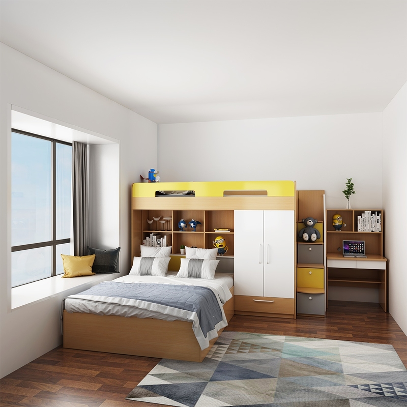 整体木纹色加上暖黄色的设计风格,让卧室显得更加温馨。多功能的组合结构,搭配书桌和衣柜的多种搭配可以满足不同的需求,可灵活变动的内外置摆放,能够更大程度上满足不同户型。其简单实用正是体现了北欧风格的特点...展开