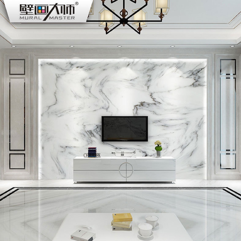 电视墙是门面,选用大理石的材质展现出不输现代的大气品味,两边的白色雕花装饰与玄关隔断同款,设计很有有整体性。