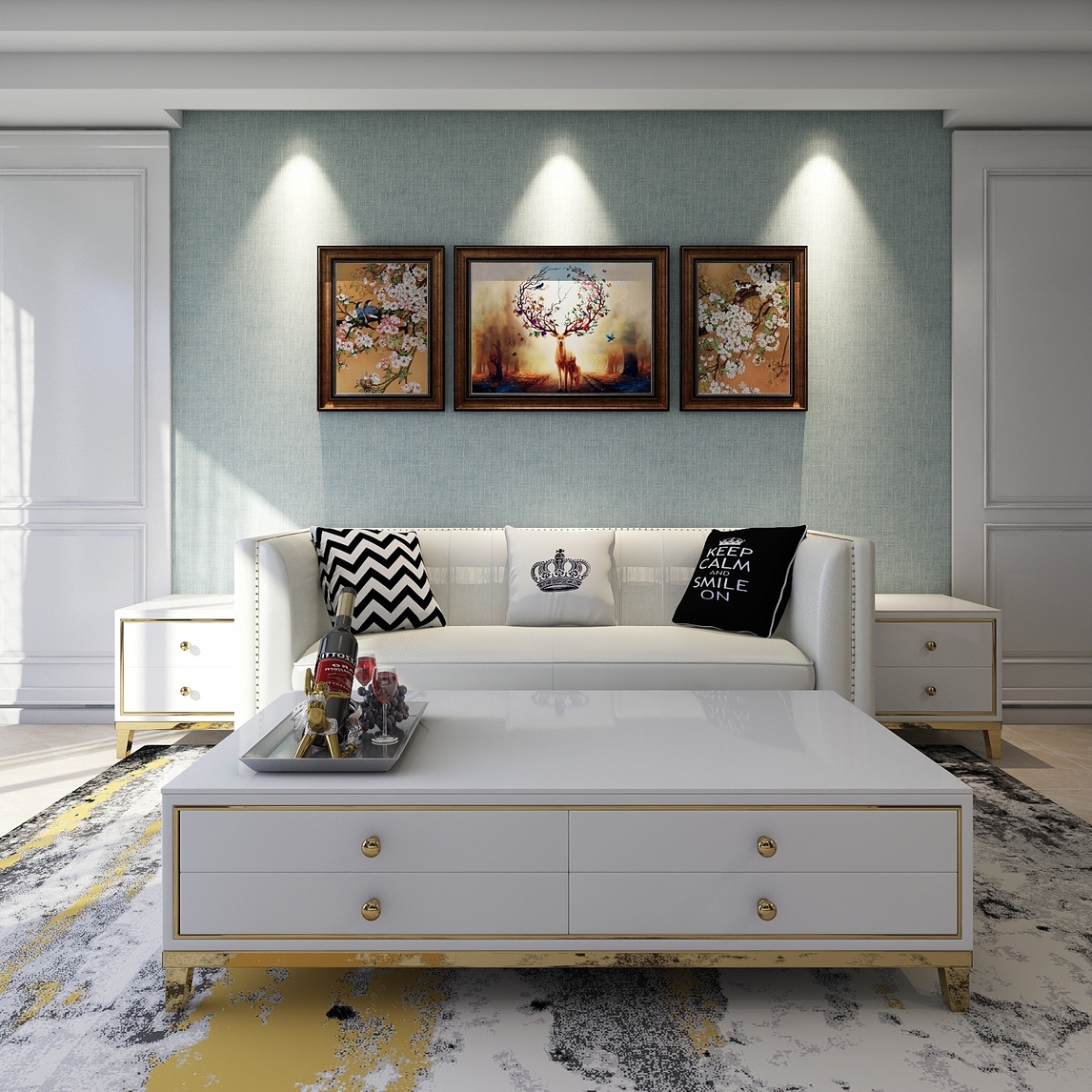 白色轻奢的简欧风格,带来一种高雅的华丽,配合青色的墙纸,家具同白色的护墙板,给任何一种欧洲传统的优雅又不失时尚的感受。