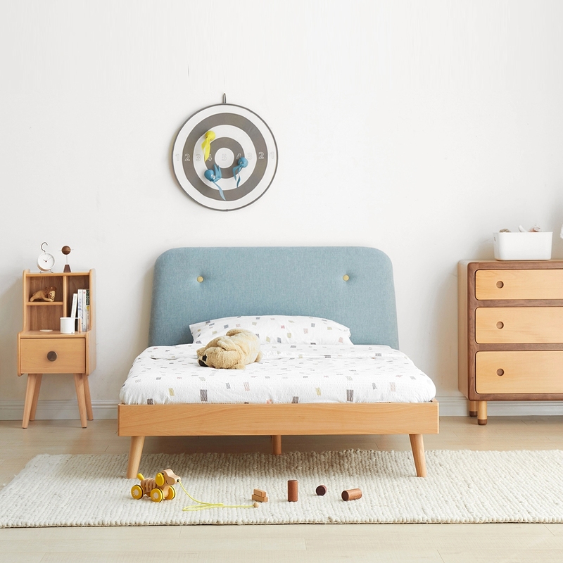 清新、清爽的儿童房搭配,其实有这3样就足够了~ 首先,要有一张高质量的实木儿童床,蓝色的软包床头,清新时尚,很符合小朋友的审美~ 其次,要有一个床头柜,小朋友的水杯、存钱罐、积木等比较零碎的小物适合放...展开
