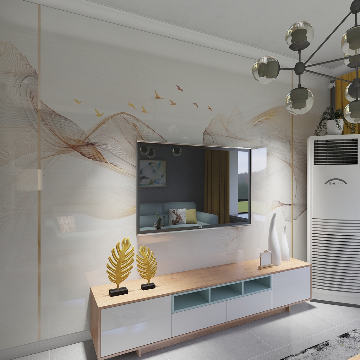 没有浮夸的电视墙设计,采用了瓷砖电视墙设计,简约清新,易于打理,且不失华丽的感觉。电视柜采用的是北欧风,配置上精美的摆设,彰显主人低调且高雅的品味。客厅整体感觉的非常清爽的,釉面砖可选择比较流行的爵士...展开