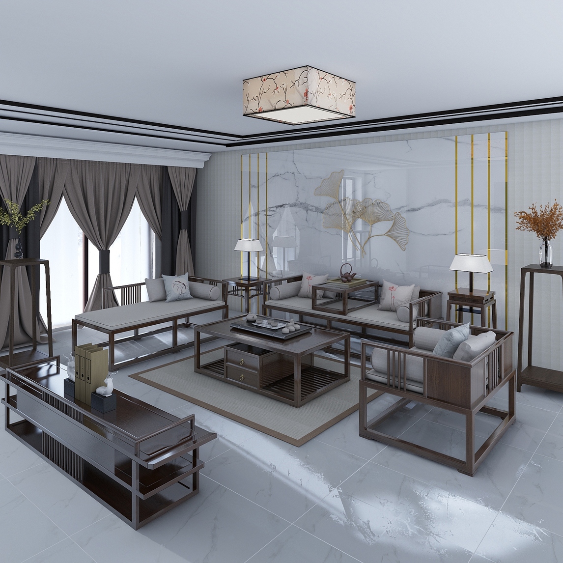 将中式元素融入这灰调的空间里,简洁大气的同时又能展现出传统文化韵味,打破单一的设计理念,避免传统中式风格里的呆板沉重,更容易让各个年龄段的人群接受。 新中式风格的客厅里的墙面和地板都选用了大理石纹的元...展开