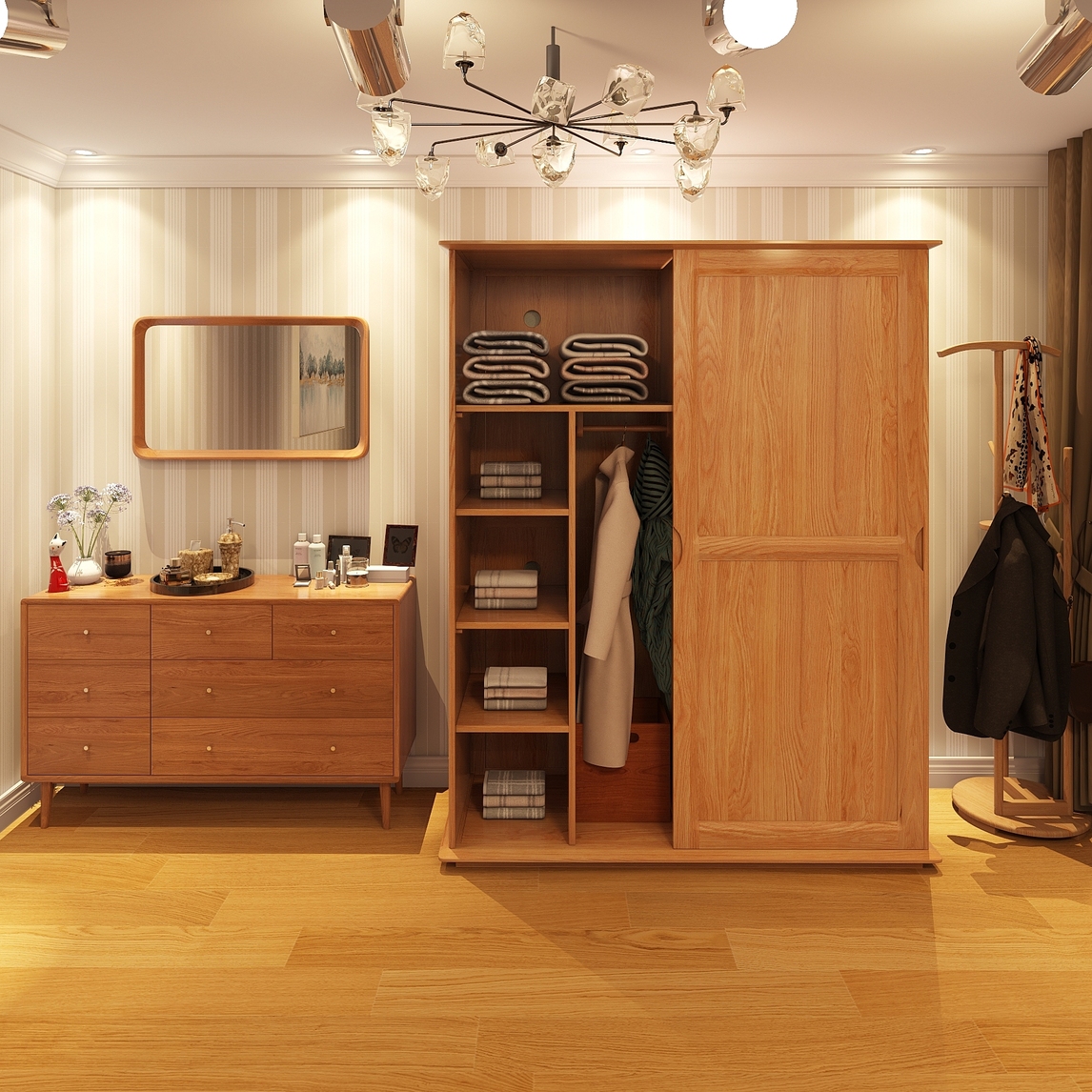 简约的日式风格可以说是在所有的装修风格中,年轻人较为喜爱的装修风格之一,原木色清新的家居可以营造出一个充满大自然清香的淡雅空间。 衣帽间中最引人瞩目的就是原木色的家具,有着很大的大自然森林气息,相反拥...展开