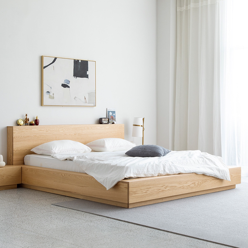 白色的墙面与地板更是营造出空旷大气的空间氛围。没有床架,只有一张榻榻米床直接放在地板上,用素色的床品稍加搭配,顿时彰显出北欧风独有的格调。床边的装饰画,是对时尚现代元素最好的诠释。