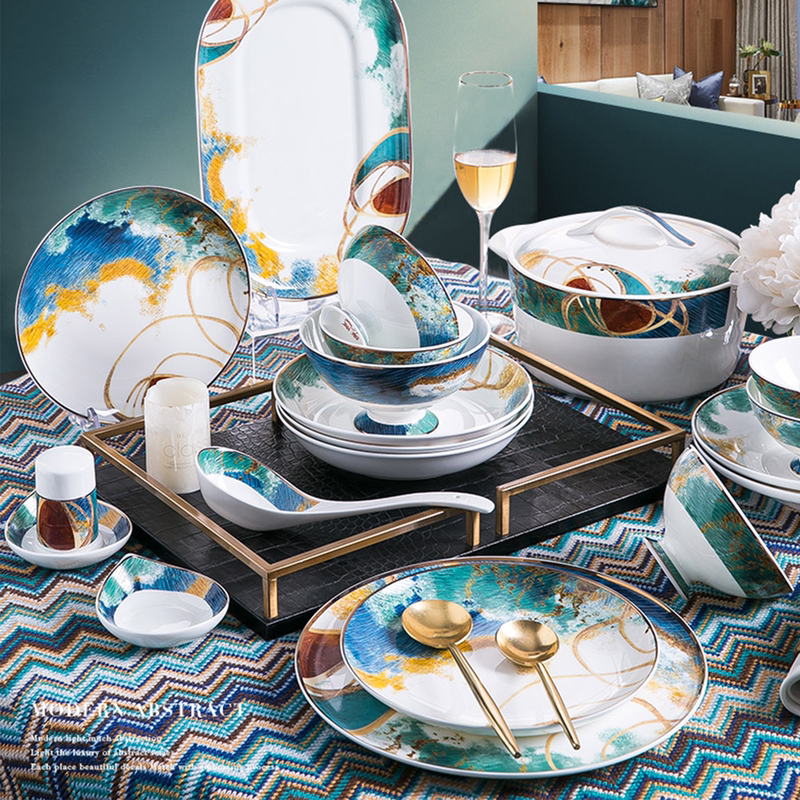 艺术无处不在。多种色彩巧妙的融合在一起,描绘出一幅五彩画卷,抽象图案设计,充满艺术气息,好看极了。每一处精美贴花,配以浮雕工艺,3D质感,更添美感,惊艳餐桌!