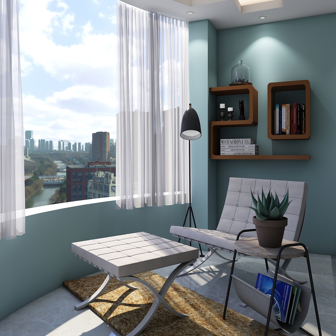 捧一本书,来一杯清茶,在小阳台上享受这样悠闲的时光不失为一件美事,极具简约北欧风格的阳台采用了浅蓝色调设计墙面,清新而优雅,加上白色调的小家具搭配,呈现出简洁时尚美感,另外大面积的窗户是阳台最瞩目的存...展开