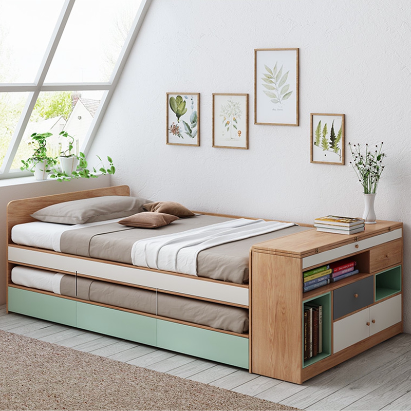 儿童房也不用弄的很卡通,孩子大一点,这样明亮的儿童房才是最合适的。方便的子母床,占用一床的位置,轻松实现上下拖床的睡眠空间。摆上几盆绿萝,净化空气,好舒爽。