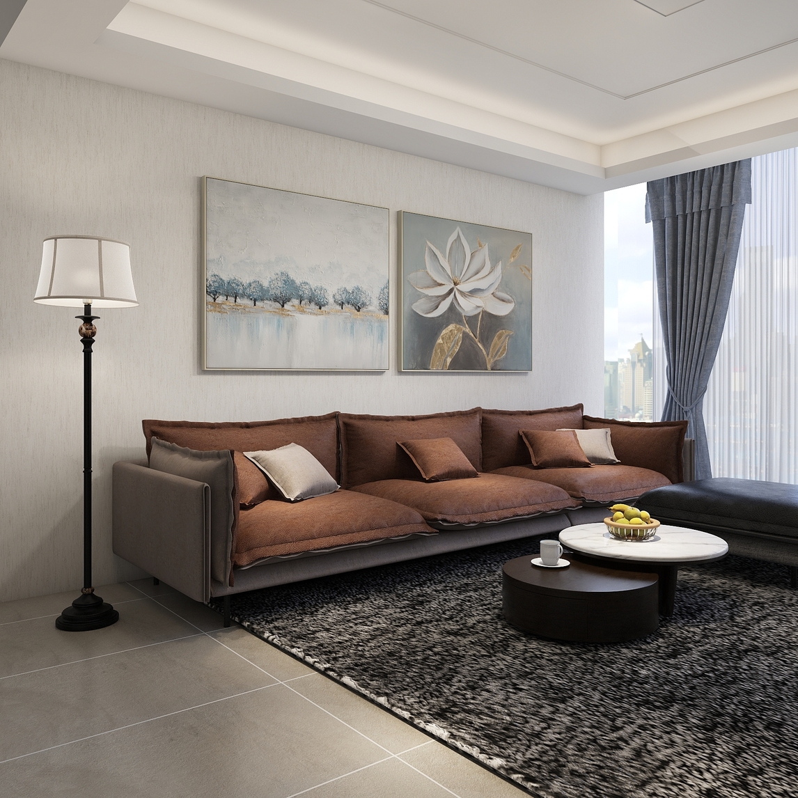 轻奢混搭风的客厅,闲散又实用的家具摆放。和三五好友一起躺在大大的沙发上,聊天喝酒看球赛,岂不人间美哉。