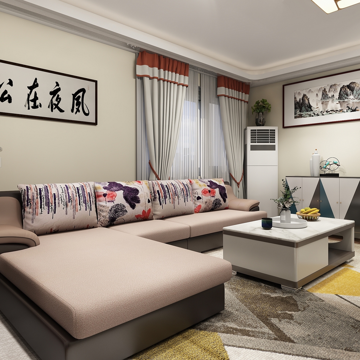 舒适的沙发上,可以坐着几个好朋友一起聊天,看着豪迈的国画和毛笔字畅谈一番,体积大,漂亮的茶几让人们不禁坐在这里享受快乐的时光