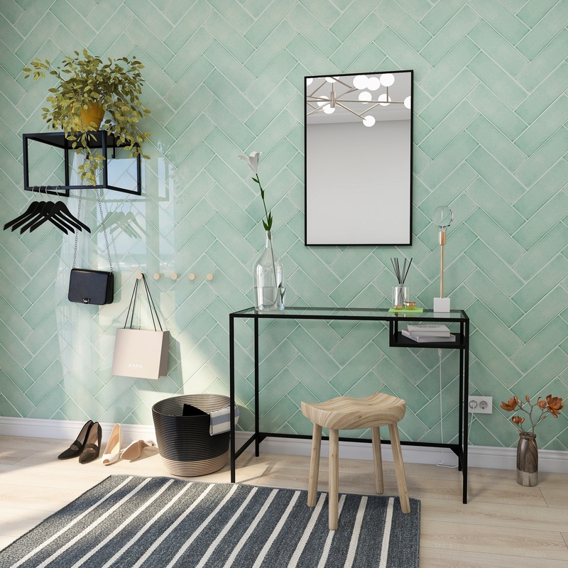 窑变釉面砖,瓷砖在烧制过程中出现了意想不到的釉色效果,俗语称为“窑变无双”,这就是每片窑变砖的独一无二。 黑框挂镜能够增添神秘色彩,简约又不显得突兀。 再加上一把古风实木椅子,现代潮流与复古的融合...展开