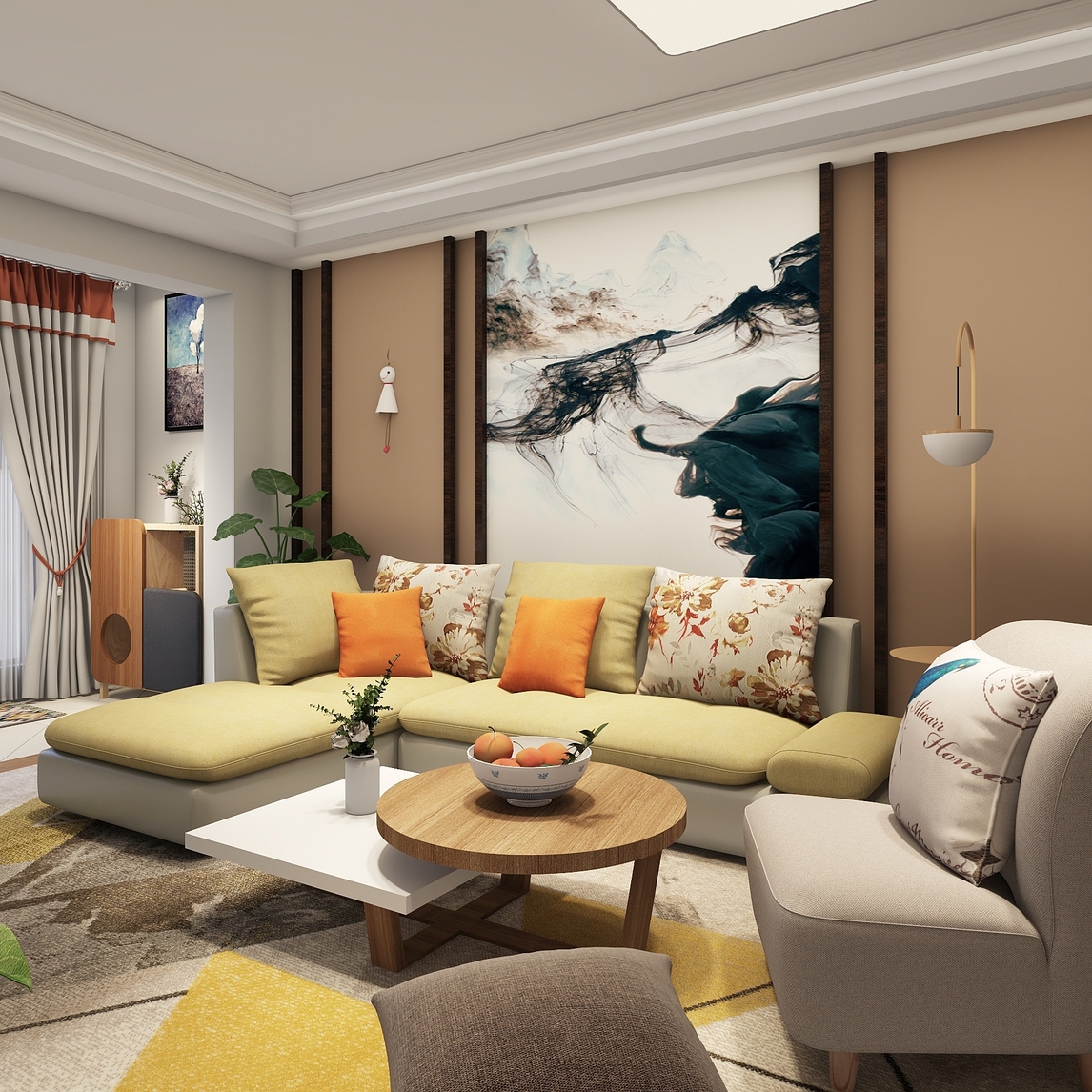 中式背景墙承载了欧式沙发的美和柔软,漂亮的落地灯让沙发一角不会应为灯光的却失而失去美感,造型独特的茶几和舒适的地毯也显示出你独特的品味