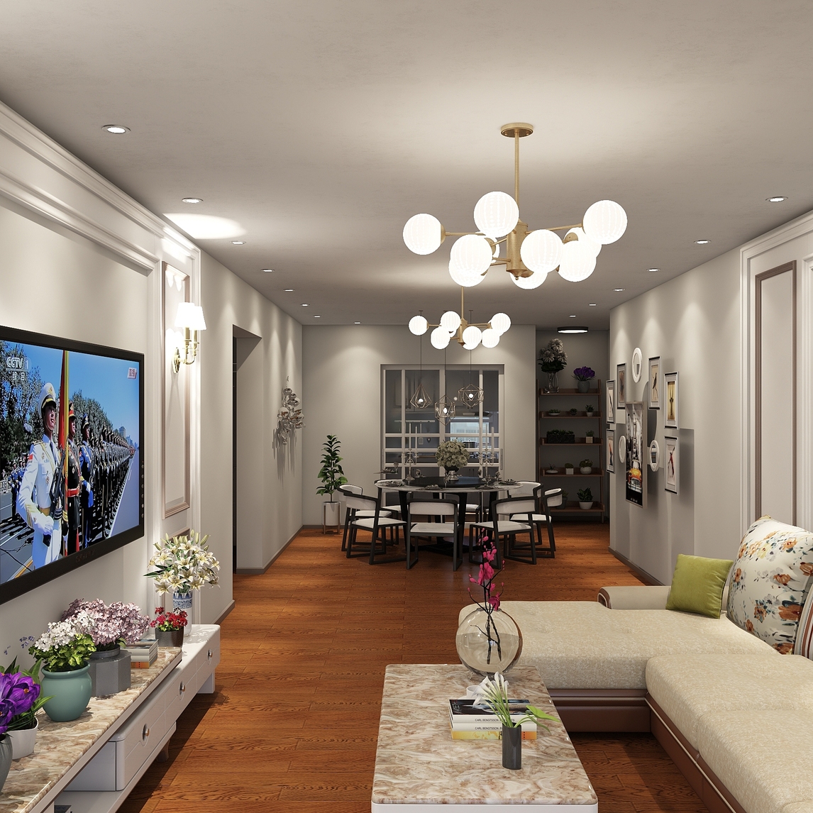 客厅作为整个房屋最重要的场所之一,家具产品一定要选好,舒适的沙发,简约实用的茶几以及同款电视柜,电视沙发背景墙点缀,整个空间美轮美奂。