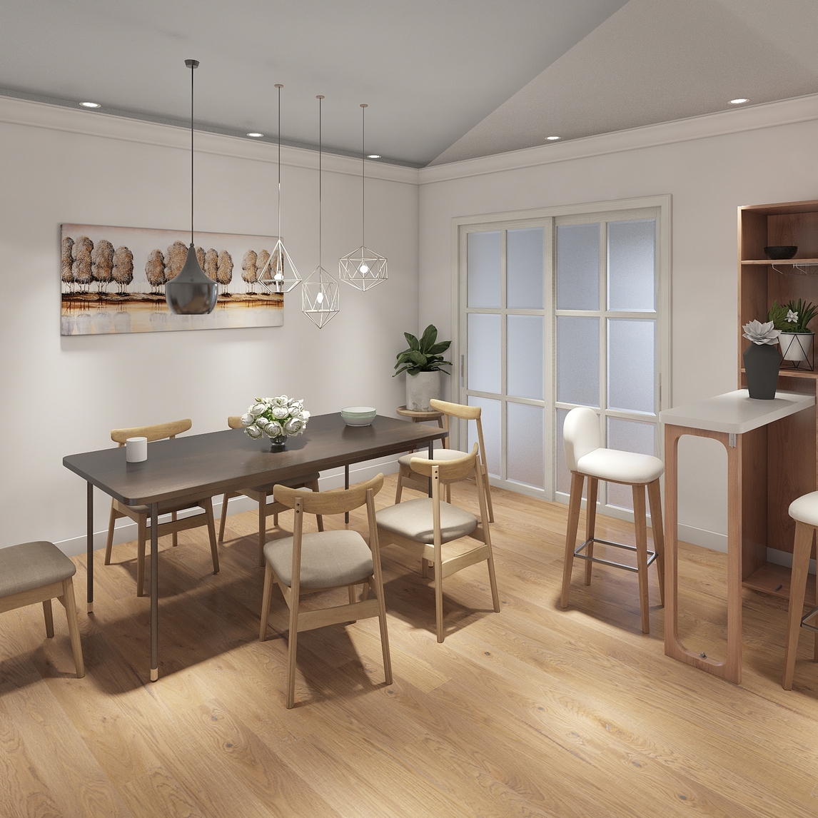 吃饭就是图个舒服,舒服的餐桌椅是肯定要有的,漂亮的心情也像漂亮的油画一样抬头就可以看到,谁家餐厅再能比这样舒适与惬意,美美的一天三顿,可以说很棒了
