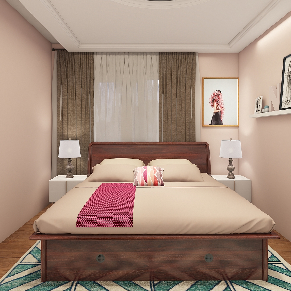 粉色的装饰让你少女心爆棚,一进到这个房间就被颜色和装饰画吸引了,,粉色的中式床和欧式的装修相互碰撞,让你不拘于点一风格的装修