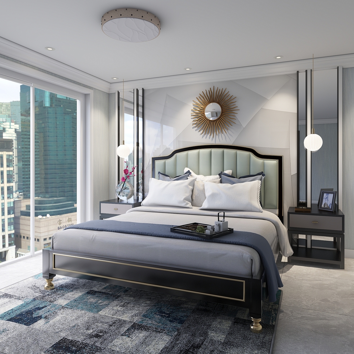 极具现代感的装饰风格,空间以白色为主,然后加入了黑色简美家具,打造出质感满满的卧室格调。玻璃材质的背景墙以其反光的特性,不仅能为卧室颜值加分,更能提升卧室亮度,让空间看起来更加明亮通透,搭配上简美风格...展开