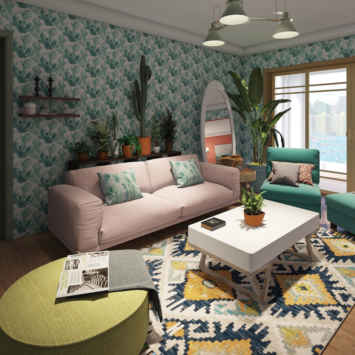 面积大的房子有着富足感而面积小的房子有着温馨感,麻雀虽小但五脏俱全。森系的空间满足了少女的幻想,仿佛就像在一片沙漠中出现了绿洲。