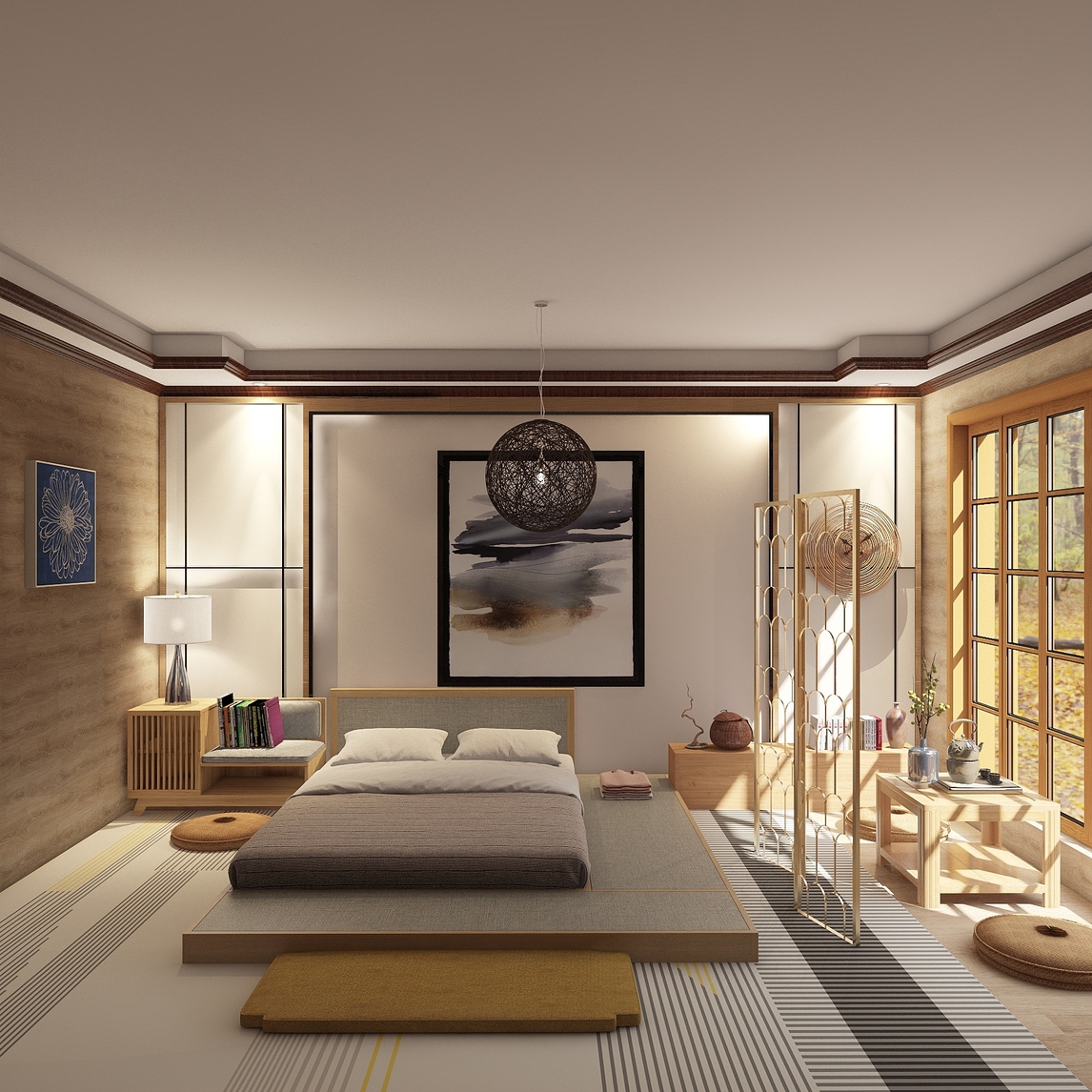 卧室选用充满标志性的木质元素打造,处处都显露出温馨迷人的日式风格。白色背景墙与日式榻榻米床具相配,营造出清新柔和的舒适氛围。靠窗处还用镂空屏风隔绝出一个休闲区,以日式茶几和蒲团作为搭配,禅意满满,让人...展开