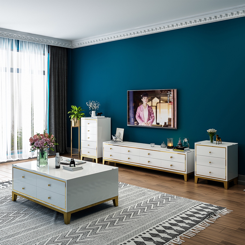张扬的金色与简约的白色柜体相结合,清新明亮,呈现出独特、个性的风格。整体设计虽然简单,却更能彰显极简之美,生活也更有品质感!