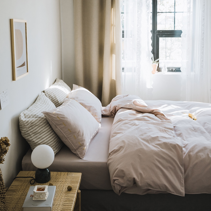 文艺女青年的卧室是什么样子?原木床、家具与经典百搭的纯色muji风床品搭配,再加上朦胧的纱帘与遮光帘,岁月静好的模样。