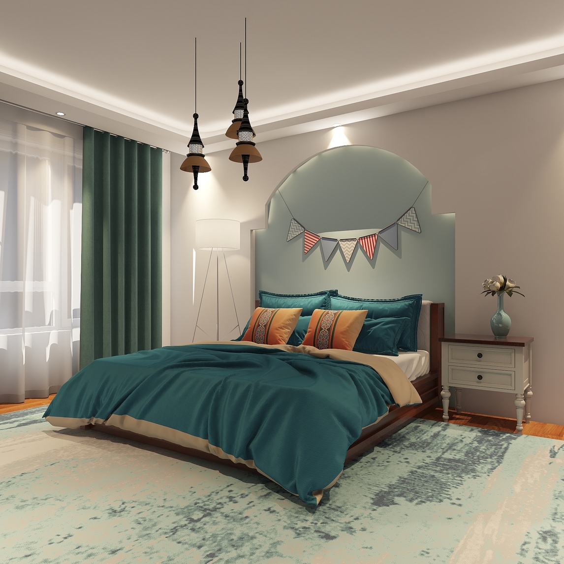 说到地中海风格,很多人都会想到大海、自然的景色,而在卧室中也将浪漫自然的地中海风情展现得淋漓尽致。在卧室中以蓝色与白色调为主,立体的拱形背景墙加入浅蓝色调的点缀,让其流露出清新而优雅的气息,加上一款抽...展开