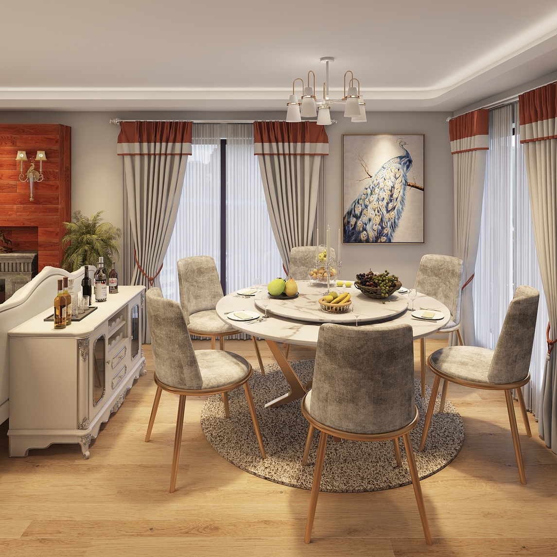 超大霸气好看的餐桌,让你们聚会吃饭时有很好的体验,配上好看的餐边柜,上面放上好酒,让你们吃饭时可以好好喝一顿
