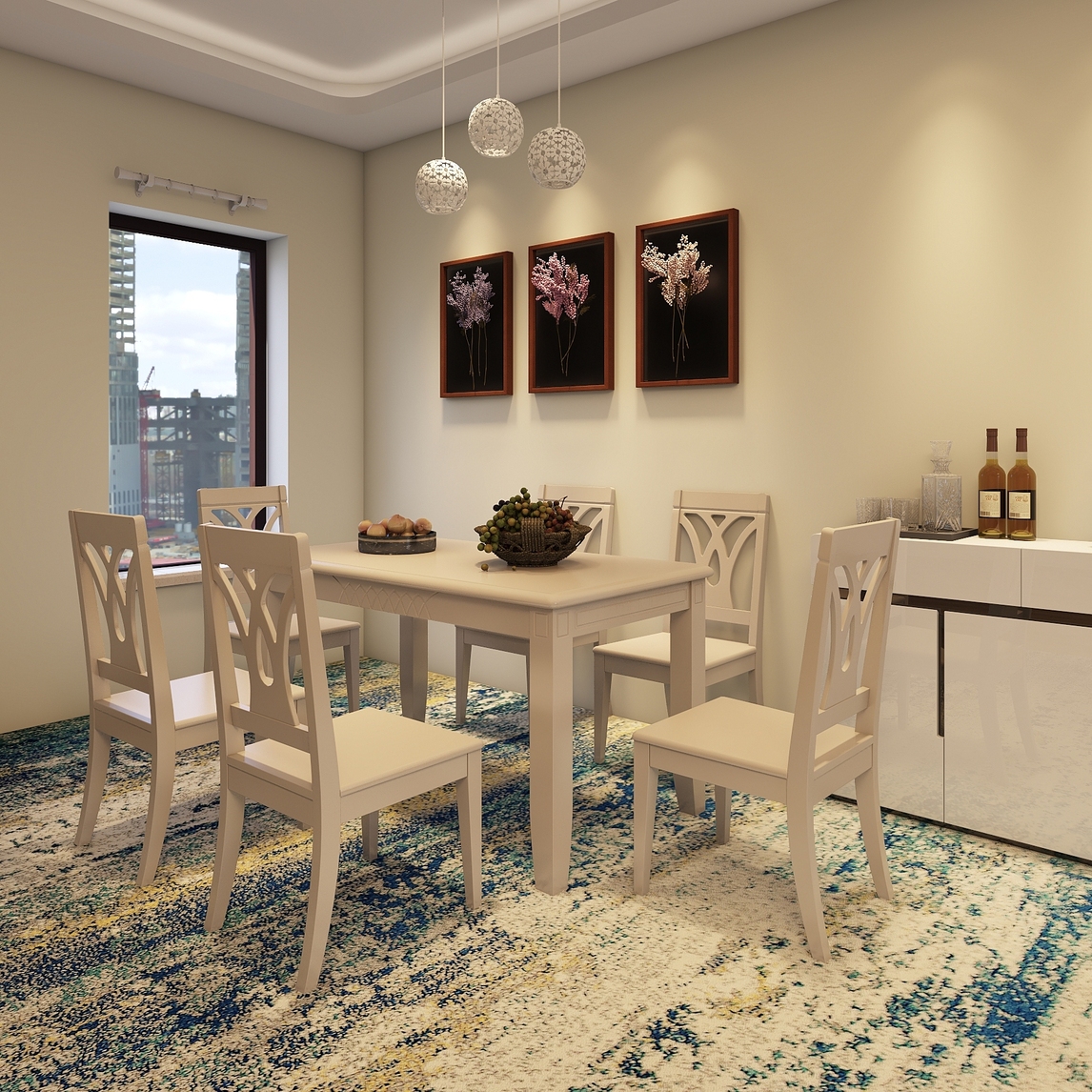 纯白的餐桌给你良好的用餐体验,配上立体的装饰画,给整个餐厅提供很好的艺术感,柔软的地毯给你高档的感觉,舒适柔软