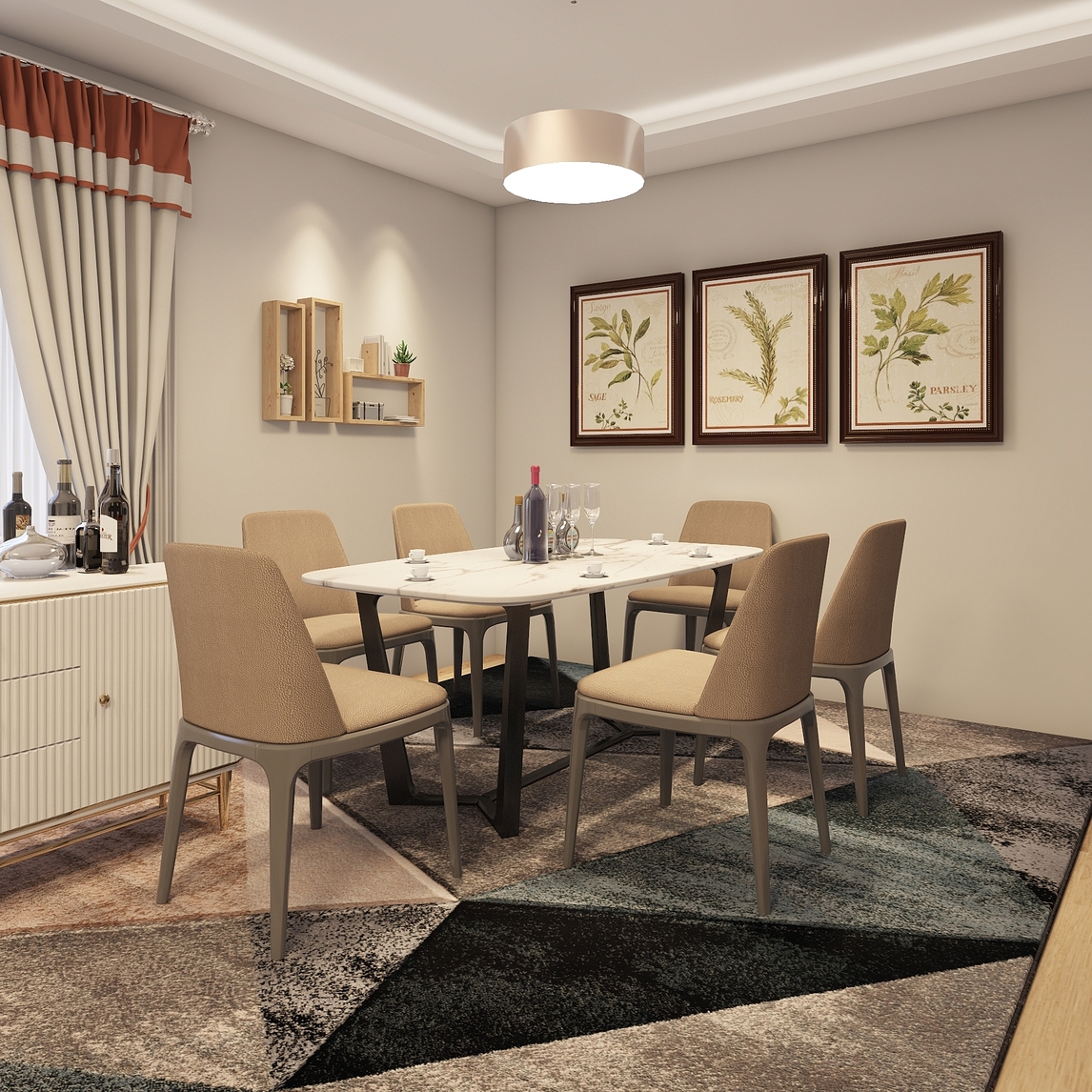 舒适优雅的餐桌椅,大理石与实木的碰撞,让整个空间迸发出暖暖的活力,似乎在这里身体得到了补充,心灵上也被温暖所填满,让温暖的气息伴随你的每一餐。