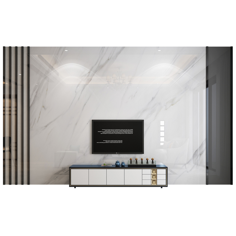 简单的大理石纹理瓷砖搭配两边金属镶嵌石材护墙板,简洁朴素,舒适温馨,又不失时尚雅气,搭配上柔和的灯光,让整个客厅更显轻奢之美。