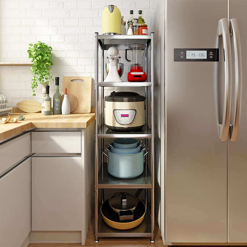 厨房里有狭缝小空间的,就用这款置物架将其利用起来,让厨房空间更整洁。6cm的层高可以调节,适合厨房里更多的物品收纳。