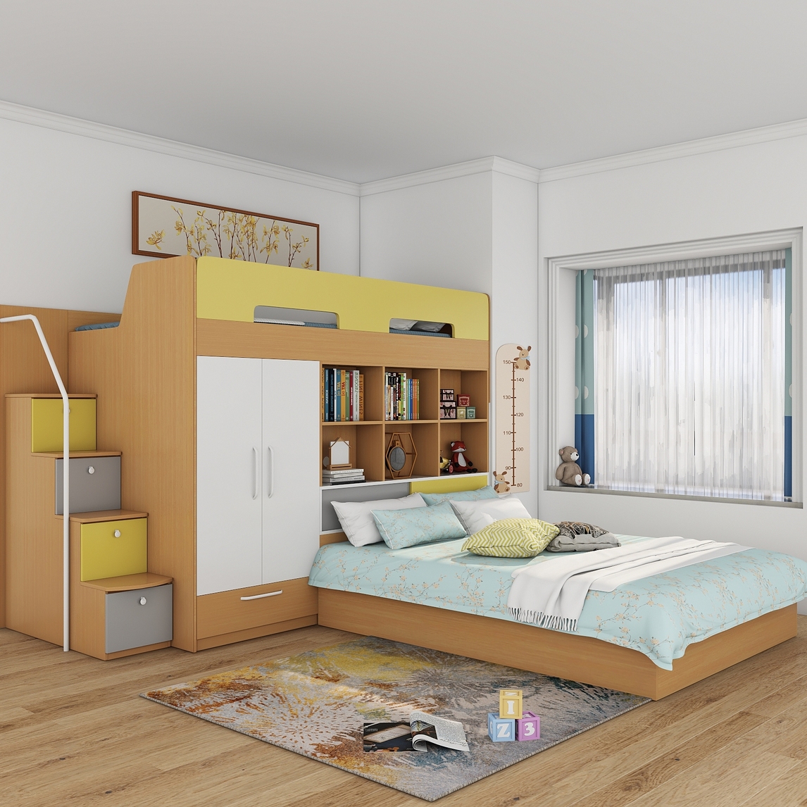 高低母子床的设计实用又省空间,无论是家有二宝,还是父母陪伴孩子一起睡眠,一张多功能的母子床就能轻松解决,而且自带多种功能结构,只需一些简单家具搭配就能打造舒适的儿童房。