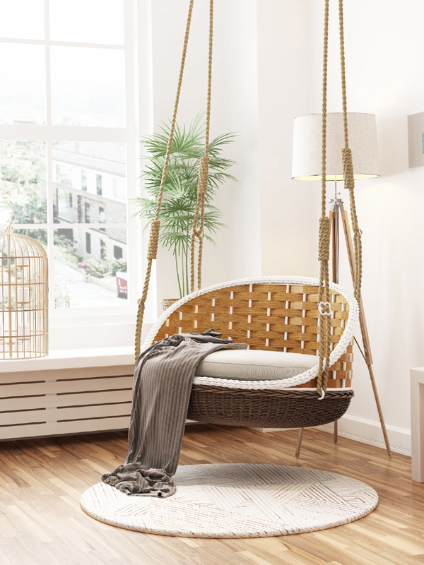阳台有不错的风景以及流通的空气,所以用来放空自己最为合适那么一款惬意的吊床肯定能让这样的舒适感得到更好的体现。要是再有一把荡悠悠的吊椅那就再好不过了!