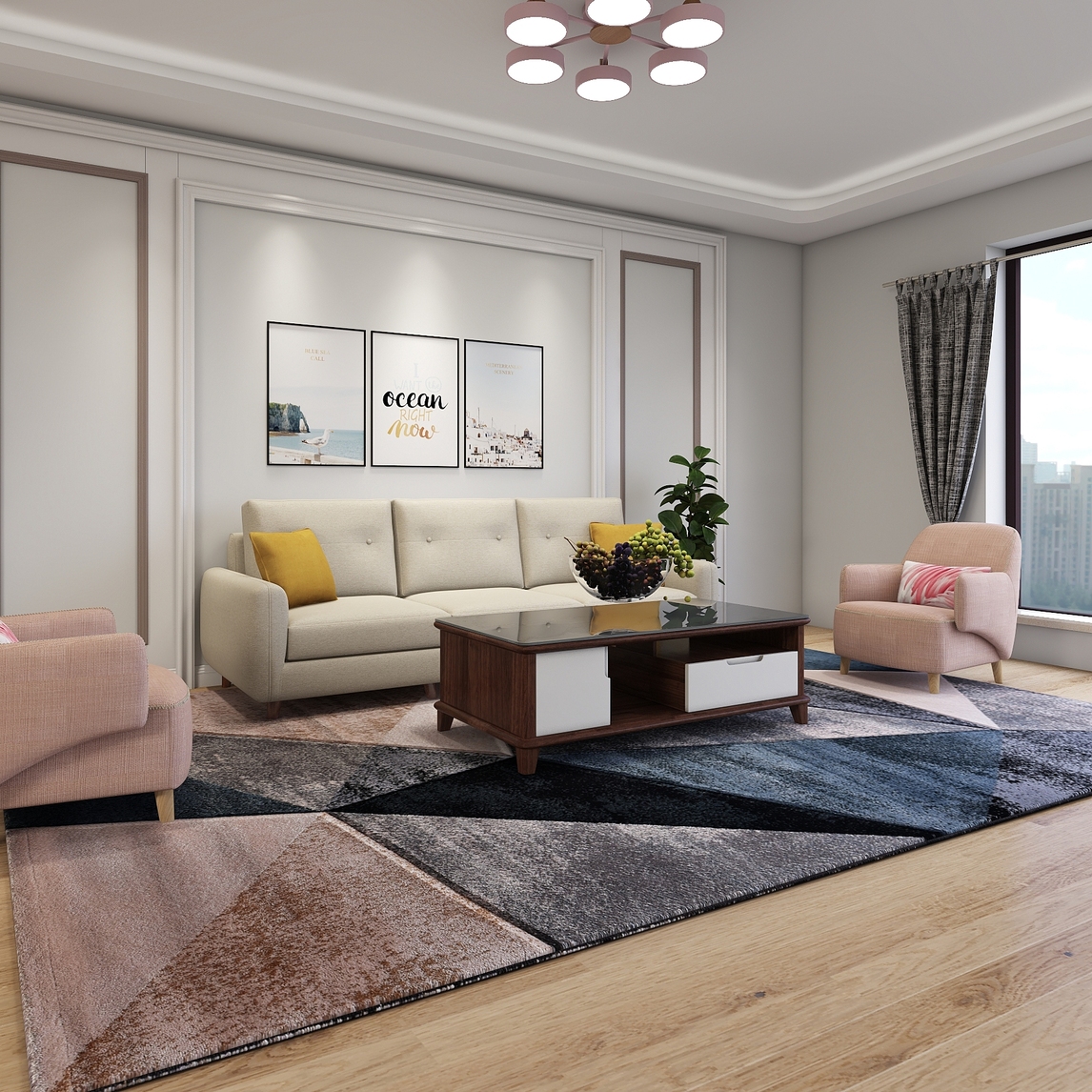 漂亮好看的客厅总是少不了漂亮的国画和舒适柔软的沙发,搭配傻瓜好看耐用的茶几和好看的地毯,终会给你多几分喜悦