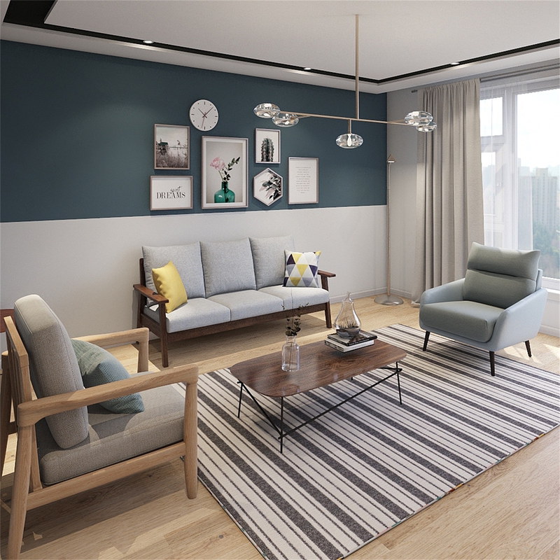 北欧风格和现代风格在某种程度上来说很接近,都是以简约为主,混搭出来的客厅自然简单又清爽,较和谐统一~