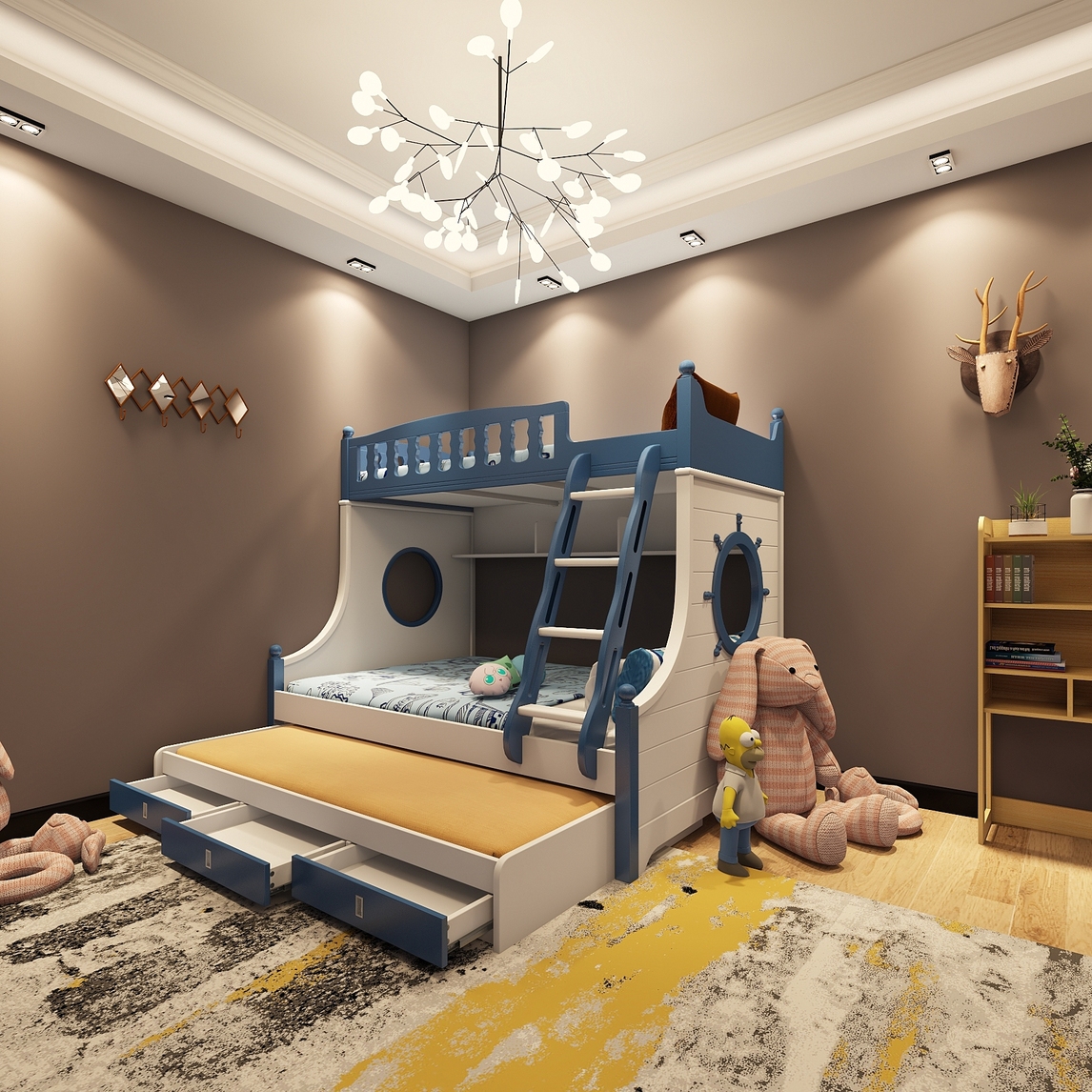 小户型儿童房双层床高低床 玩出生活多种可能,打破小户型的极限,演绎多种玩法 颠覆对小户型的认知,休息玩乐亲子均不误 从小培养宝贝们亲情,缤纷色彩更温馨