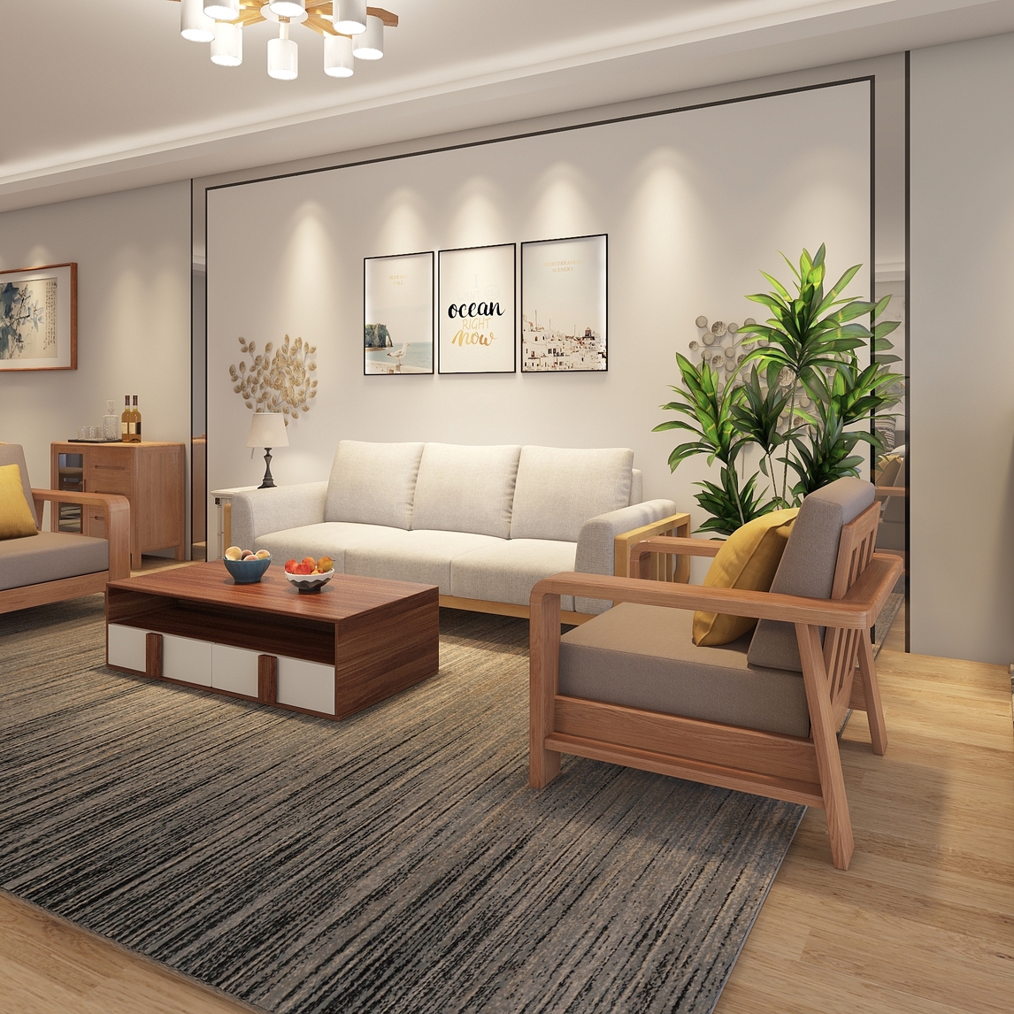 当日式简约的沙发碰上北欧线条感十足的背景墙时,线条感和柔美感迸发出来,让客厅呈现出一副混搭的美感,让你流连忘返
